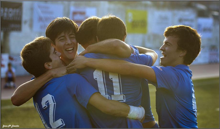 La sensación al acabar el partido era la de que nuestros chavales se habían propuesto ganar este enfrentamiento contra el Éibar costase lo que costase. No hubo ni un momento de desconcentración, de relajamiento, insistimos constantemente en irnos arriba y marcar. Muy ofensivos y muy seguros en defensa. Una defensa que fue un frontón para el Éibar. Sus balones constantemente eran interceptados por nuestra línea defensiva y si alguno conseguía pasar, ahí estaba Ian para que la intención muriese en sus manos. El Éibar salió desde el minuto uno ejerciendo una presión muy fuerte, intentando robarnos el balón y dejando los espacios al mínimo. Pero supimos aguantar y hacer el mismo juego que ellos. El partido era un “arriba-abajo”, el balón circulaba muy rápido debido a tener que jugar al primer toque. La diferencia estuvo en la calidad de nuestros chavales, poco a poco fueron jugando más y elaborando jugadas que creaban peligro hasta que llego el gol. Al saque de un córner, en el minuto 21, Jon cabecea de forma impecable y marcamos el primero, 1-0. En la segunda parte el Éibar quiso poner una marcha más a su juego y aunque lo intentaba no lo conseguía. Sin bajar en ningún momento nuestra intensidad de juego, la balanza del partido se iba inclinando hacia nuestro lado y tras varias llegadas sin fortuna, llego el minuto 65 donde Gara después de pegarse una galopada de las suyas y con el portero desbordado, lanza a puerta por arriba y un defensa rival rechaza el balón bajo los palos. Pero ahí estaba de nuevo el incansable Jon, que con fuerzas sacadas de no se sabe dónde, salta más que la defensa y pica el balón marcando el segundo gol, 2-0. El Éibar se fue desinflando y nosotros todavía dispusimos de alguna que otra ocasión. Un gran partido, con una actitud ejemplar de todos nuestros jugadores. El comentario general en la grada era: “Aquí hay mucho equipo” y viendo lo visto… tanto que lo hay. El próximo partido lo jugamos en Aretxabaleta. Seguro que seguimos disfrutando del juego del equipo y si lo hacemos bien… los puntos para casa. Para ver las fotos del partido "picar" en la imagen.