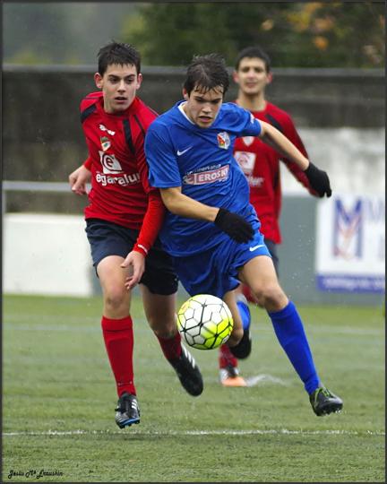 Lo tuvimos todo menos unos cuantos goles más por nuestra parte. El poco acierto y un par de manos gloriosas del guardameta rival nos dejaron con un amargo sabor de boca por lo que pudo ser y no fue. Si a esto le sumamos la no muy acertada actuación del colegiado (fue increpado por ambas aficiones) pues está todo dicho. Nuestros chavales se “vaciaron”, su entrega fue total y a pesar de las bajas que sufre el equipo, el dominio del partido y las ocasiones fueron nuestras. En una primera parte en la que fuimos de menos a más, conseguimos nuestro gol en el minuto 43. Acabábamos de tener un par de ocasiones para adelantarnos en el marcador, pero fue Gartzi el que a falta de dos minutos para el descanso, nos ponía con el 0-1. Poco duró la alegría ya que en el 46 el árbitro pita un riguroso penalti a Iraitz y el Aloña Mendi marca, 1-1. Comenzó la segunda parte y tanto el juego como las ocasiones eran nuestras. El pequeño campo propiciaba las transiciones rápidas y veíamos que nos faltaba el acierto final para rubricar ese juego. Llego el minuto 64 con una falta a nuestro favor en la frontal del área rival. Unanue coloca el balón, golpea y por fin llega el premio que esperábamos, golazo que deja al portero del Aloña haciendo la estatua y que nos daba la tranquilidad, 1-2. Todo siguió igual, pero a falta de cinco minutos para el final, tras el saque de un córner del Aloña Mendi, cometemos un fallo de marca (posiblemente el único) y rematan con facilidad consiguiendo el empate, 2-2. Jarro de agua fría que nos cayó encima porque ya disfrutábamos de la victoria. Final y un punto que nos mantiene como líderes de la clasificación. La próxima semana recibimos en Altamira al Bergara. A ver si estamos más inspirados cara al gol y hacemos un partido “redondo”. Para ver las fotografías del partido, hacer “clic” en la imagen.
