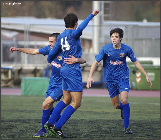 Empezamos mal, bastante mal, pero nos bastaron ocho minutos para darle la vuelta al partido y hacernos los dueños del mismo. En los primeros compases del encuentro donde cada equipo busca posicionarse e intenta controlar el juego, nos cayó el primer jarro de agua fría. Era el minuto 12 y un gol “tonto” y de fortuna para el Zumaiako nos ponía por detrás en el marcador, 0-1. Quedaba mucho partido por delante y no había que agobiarse, intentamos hacer nuestro juego sabedores de que funciona, pero nuestro rival se había animado con el gol y nos hacia unas contras rápidas con mucho peligro. Solo tres minutos después del gol casi consiguen el segundo. Nosotros estábamos descolocados, llegábamos tarde a los rechaces llevándoselos la mayoría de ellos nuestros rivales. Nuestros pases eran imprecisos y constantemente regalábamos el balón. El Zumaiako lo veía y lo aprovechó, en el minuto 36 marcaba su segundo gol, esta vez de bonita factura, 0-2. Este gol nos dejo más noqueados y deseando que llegase el descanso para ver si seríamos capaces de “resetearnos” y jugar a futbol. Y algo debió pasar en ese vestuario, de alguna forma el equipo se conjuró porque fue salir y comenzar a morder. Nada más arrancar con el balón ya nos presentamos en la portería rival, pero fue a los tres minutos cuando marcamos el primero de los goles de esta remontada. Gartzi centra desde la banda derecha y es Aritz el que empuja el balón al fondo de las mallas, 1-2. Las caras eran otras y el ánimo también. Fue sacar del centro y volver a la carga, Jon se va por la izquierda y cuelga un balón al centro del área donde llega Gartzi en un salto “olímpico” y golpea con el interior sin que el portero rival pueda hacer nada, 2-2. Ahora ya no eran solo las caras y el ánimo, ahora se notaba en la mirada de los nuestros que querían más, la maquinaria había empezado a funcionar. Solo tuvieron que pasar otros cuatro minutos, en el 56, para que Jon hiciese saltar de júbilo a la afición, a sus compañeros y hasta a un señor de Murcia que pasaba por allí. Ierai y él se van por el medio y tras un rechace es Jon el que golpea consiguiendo el tercer gol, 3-2. ¡¡¡UNA PASADA!!! Solo habían pasado ocho minutos y ya ganábamos… El Zumaiako no se lo creía, se miraban unos a otros como preguntándose: ¿Esto como se para?. Seguimos atacando y haciendo nuestro juego mientras que nuestro rival se echaba para arriba a intentar empatar. En esos momentos es cuando les pillábamos a la contra y a punto estuvimos de aumentar la ventaja. Fue en el minuto 82 cuando esa ventaja se incremento. En una de esas contras hacen penalti sobre Gartzi y es Jon el que lo lanza marcando el cuarto gol, 4-2. Quedaban los minutos de la basura y final. Alegría por todo lo alto viendo lo que podemos hacer si no bajamos los brazos y seguimos luchando. Enhorabuena chavales. Seguimos líderes y el próximo partido lo jugamos en Elgoibar. Van quintos en la tabla a once puntos y no será partido fácil. Además tenemos el componente de las pistas de atletismo con el que saben “jugar” en el caso de ir ganando. Veremos lo que pasa. Para ver las fotografías del partido, Hacer “clic” en la imagen.