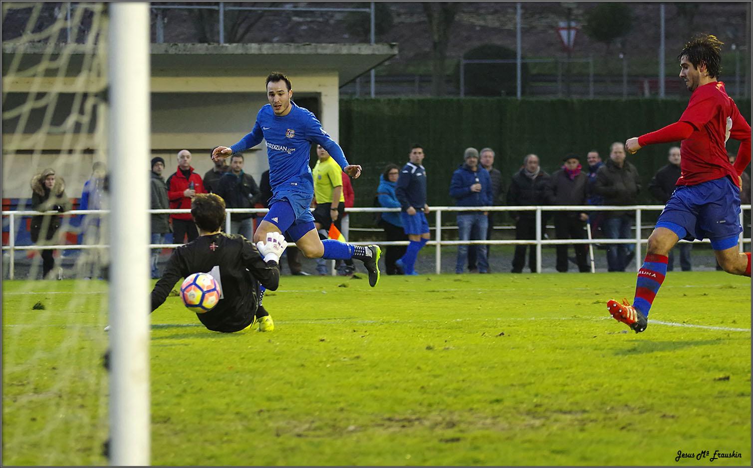 La primera media hora del partido nos hacia pensar que íbamos a sufrir mucho, pero pasado ese tiempo de angustia nos fuimos haciendo con el partido. El Anaitasuna ya no sacaba el balón tan fácil y eramos nosotros los que nos acercábamos a su área. Pocos minutos antes del descanso tras el saque de un córner, Rodriguez se eleva entre todos los demás jugadores y remata de cabeza impecablente, 0-1. En la segunda parte nuestro fuerte fueron las contras, salíamos rápido con el balón y les pillábamos sin defensa, aunque no tuvimos acierto en alguna de esas ocasiones. Al final se hizo justicia y el balón entró de las botas de Aratz con un tiro cruzado que batió al portero azkoitiarra, 0-2. Tres puntos ante el líder que nos acerca a la cabeza de la tabla clasificatoria. El próximo partido en Altamíra contra el Mondragón, es un rival directo y ganarle supondría otro avance en la clasificación. Par ver las fotografías del partido, usar el enlace que está abajo. La forma más fácil y rápida de usar el enlace es la siguiente: En navegador Chrome 1- Pulsar el botón izquierdo del ratón y “barrer” el enlace para seleccionarlo. 2- Una vez seleccionado, pulsar el botón derecho del ratón y en el menú contextual que aparece pulsar con el botón izquierdo en la opción “ Ir a http.//(nombre del enlace)” En navegador Mozilla Firefox 1- Se hace lo mismo, pero en el menú contextual que aparece hay que pulsar sobre una de las estas tres opciones, según se prefiera: - “Abrir enlace” - “Abrir enlace en una pestaña nueva” - “Abrir enlace en una ventana nueva” https://goo.gl/photos/MebrsN8tejgKx8uB6