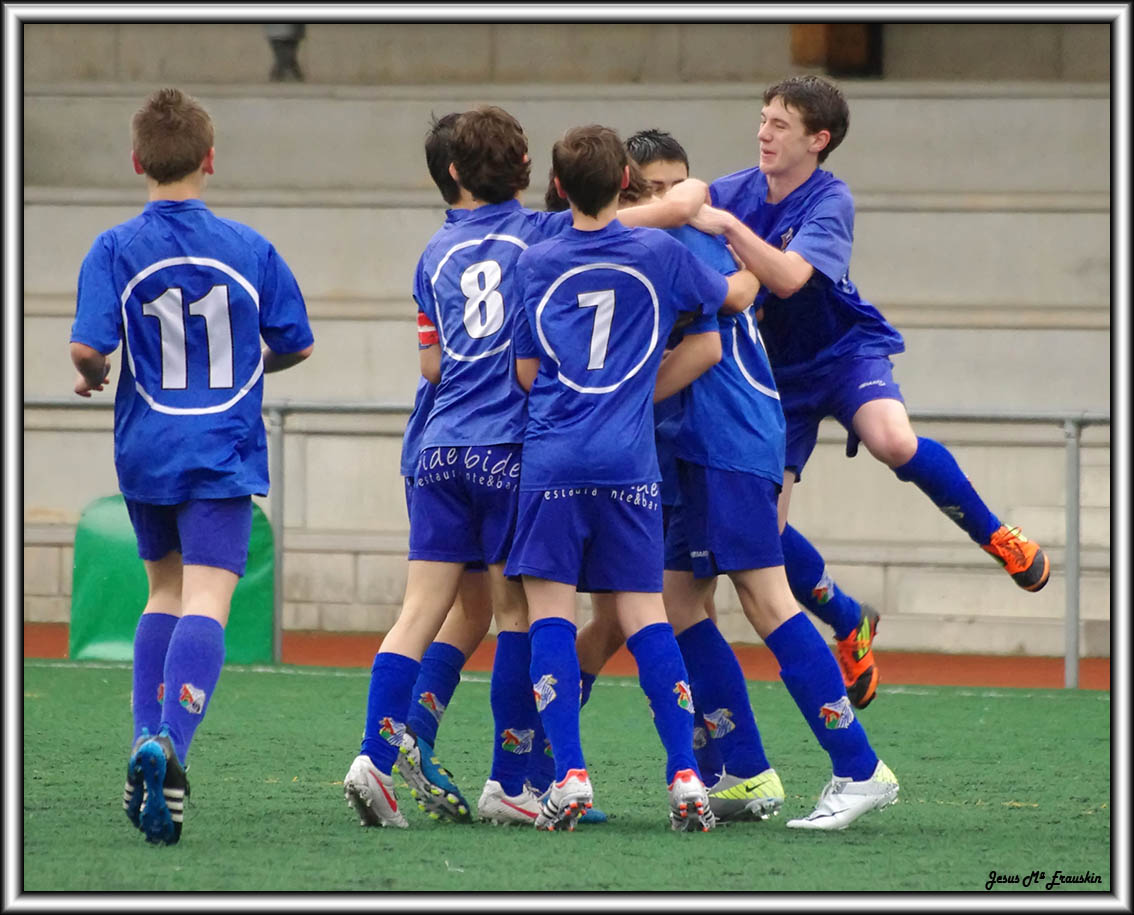 Llevábamos los últimos partidos notando algo en nuestros chavales, en el juego del equipo. Los resultados que nos acompañaban confirmaban nuestras sospechas, pero quizás no queriéndolo creer o esperando un cambio, aguardábamos en silencio a que volviese esa “chispa” que lo convertía todo en fácil. Nuestras alegrías e ilusiones como afición, se estaban convirtiendo en dudas y preocupaciones. En la recta final de la temporada todo podía estropearse, nuestros rivales más directos no fallaban y a nosotros nos costaba conseguir los puntos. Pero cuando más se necesita demostrar que somos un equipo grande, hay están nuestros chavales. La temporada se ha hecho larga y desde fuera lo vemos fácil, demasiado fácil. Pedimos que siempre se mantenga un nivel alto, que haya victorias y que se juegue bonito, pero olvidamos el esfuerzo, lesiones y presión que soportan estos chavales. Deberíamos estar orgullosos de lo que están consiguiendo, del nivel que mantienen, del juego que hacen, de todo lo que nos dan tanto al Club como a la afición. Por eso, sabiendo lo difícil que ha sido lo que tan fácil ha parecido ZORIONAK eta ESKERRIK ASKO. No quiero olvidarme del “cuerpo técnico”, Petxa, Leku y Regil (Pirulo) son los auténticos sufridores de todas las emociones que se han dado partido a partido. Han guiado a nuestros chavales hasta donde están y sobre todo les han enseñado lo que es esto del futbol. Nos queda un último paso, el Campeonato de Euskadi. Nos vamos a enfrentar contra los más grandes, sabemos lo que es esto porque ya vivimos esta experiencia en Alevines. Va a ser muy difícil, casi imposible, pero estamos convencidos que como en la anterior ocasión, seréis capaces de demostrar todo el potencial que tenéis, poniendo el punto final a una temporada que recordareis. ZORIONAK.