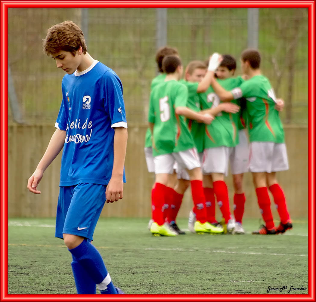 Clara superioridad de nuestros chavales sobre el Tolosa. Se jugó bien, por las bandas, tocando el balón, presionando y robándolo. Pero todo esto fue durante unos sesenta y cinco minutos. En un momento el Tolosa se quedo con ocho jugadores por expulsión de tres de ellos a la vez. A partir de ahí no se sabe que nos paso, que les dejamos que nos “bailasen”. A punto estuvo el Tolosa de empatar el partido en los minutos finales, habiendo llevado nosotros una renta de tres goles (0-3). A ver si aprendemos de esto y conseguimos que no nos vuelva a pasar. El próximo partido lo jugaremos en Azkoitia contra el Anaitasuna.