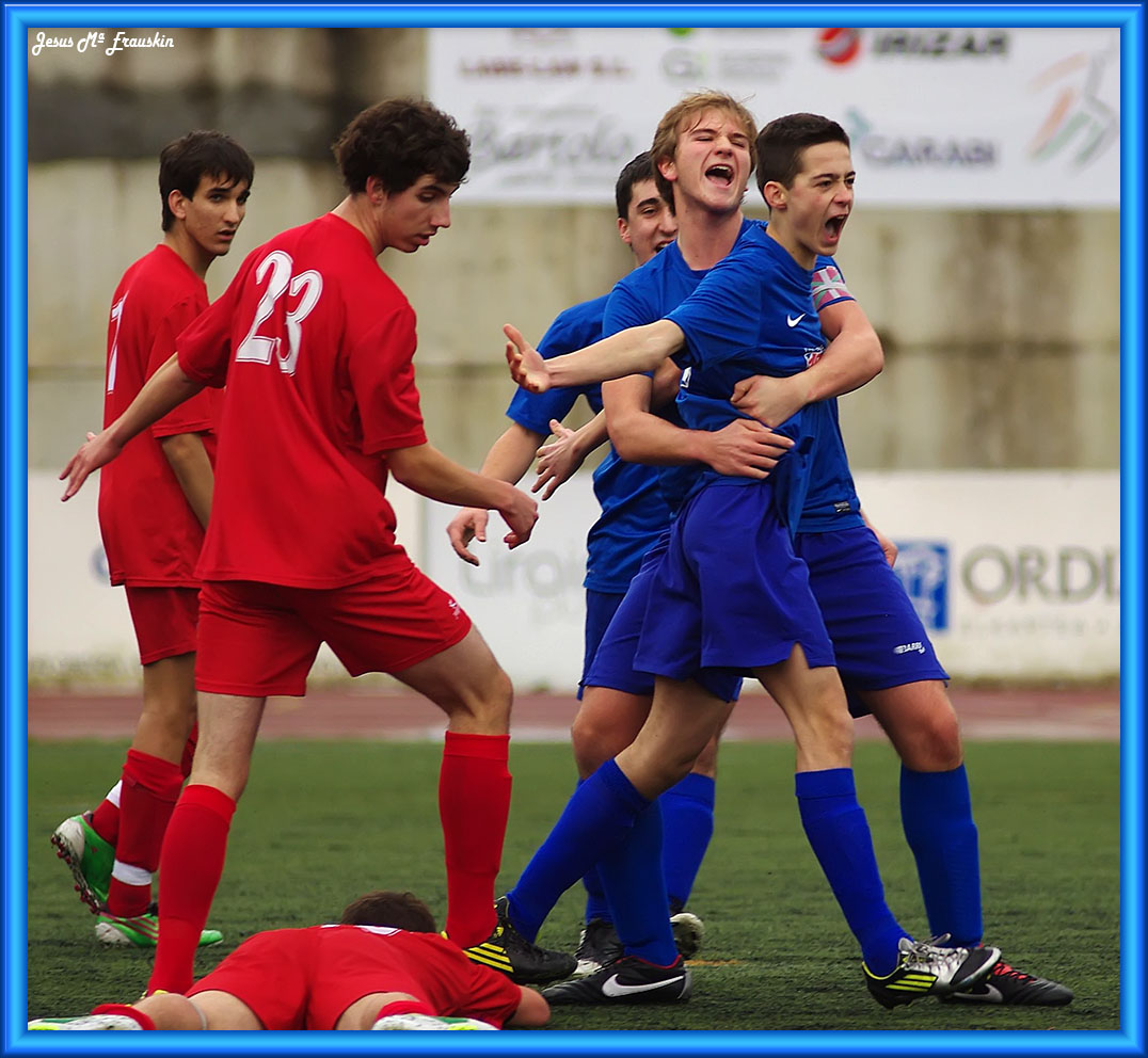 Comenzó el partido con dominio nuestro en los primeros compases de juego, poco tardo en llegar el primer gol, Rivera en el minuto diez nos ponía por delante y como siempre pasa “esto pintaba bien”. Pero el Euskalduna no tenía ninguna intención de perder y poco a poco nos fue comiendo el terreno, consiguiendo el empate y pudiendo haberse ido al descanso incluso por delante. Algo debió de pasar en el vestuario, porque nuestros chavales salieron convencidos de que había que corregir el mal juego con el que acabamos la primera parte. A los pocos minutos Lander nos volvía a adelantar en el marcador y nuestro juego mejoró. Aunque el Euskalduna no se rindió en ningún momento, nosotros seguimos haciendo nuestro juego que trajo otros dos goles de “Zuru”. Al final 4-3 y deseando que acabase el encuentro. Como curiosidad destacar la buena actuación de Iker Moure que en este partido cambió el uniforme de portero por el de jugador, demostrando que no lo hace nada mal. El próximo partido nos vamos a Oñate donde nos espera el Aloña Mendi. Están un punto por detrás nuestra y seguro que será un duro partido.