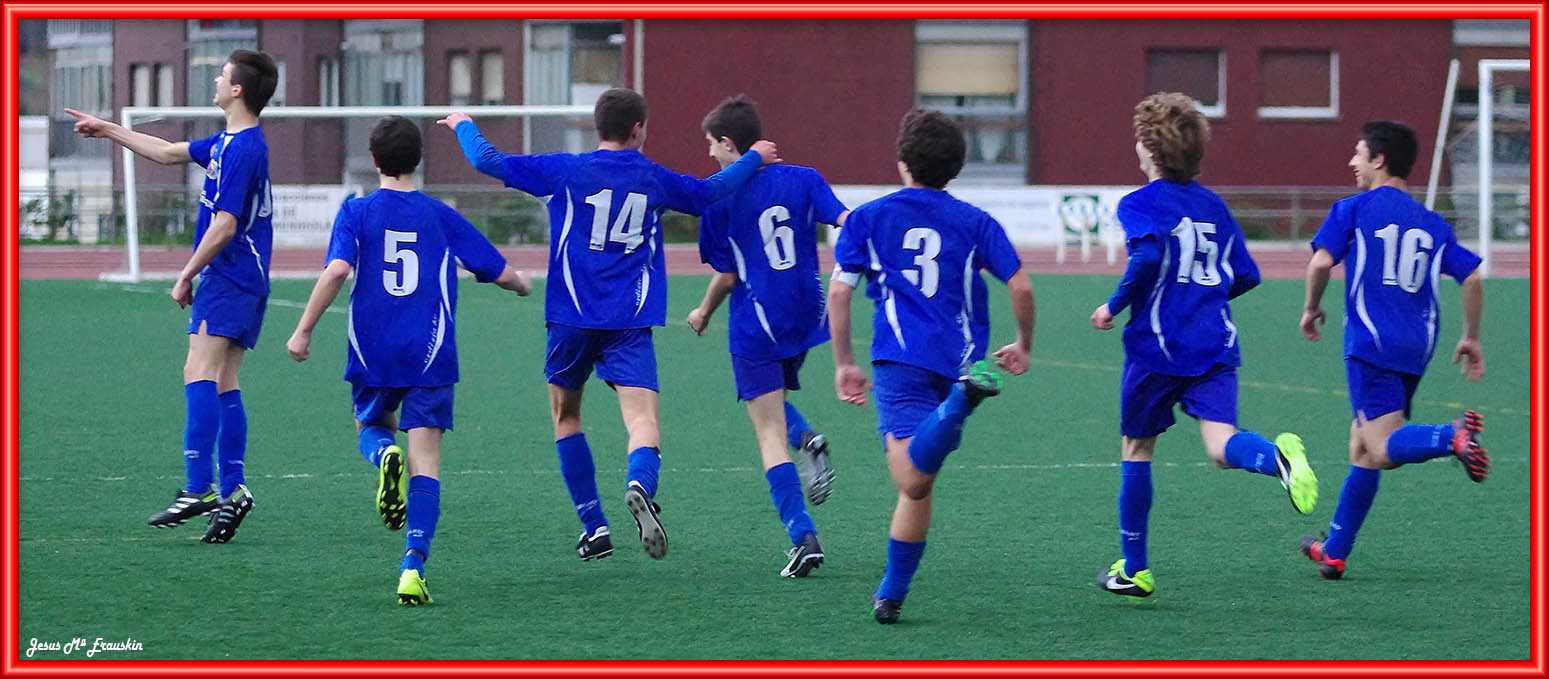 Fueron tres, pero pudieron haber sido un puñado más. Como siempre nuestros chavales crearon innumerables ocasiones de gol. En este partido fueron por un lado los palos que tres veces impidieron que el balón entrase y por el otro, el que seguro fue el protagonista del partido: “Josu” el portero del Urola. Nos paro al menos cuatro tiros a “bocajarro” que ya se cantaban como gol y nos amargo el partido. Solo pudimos con él en el último tiro que hicimos a puerta, que aunque toco el balón, no pudo impedir que este entrase y nos llevásemos así la victoria. Seguido fue poner el balón en el círculo central y pitar el final. Buen partido, en la línea de los que estamos jugando. Seguimos haciendo nuestro juego independientemente del rival que tenemos en frente. El próximo partido recibimos al Aretxabaleta, no parece un encuentro difícil pero ojo. Otra victoria nos mantendría en la lucha por el segundo puesto.