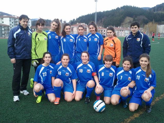 Neskan partiduan, han jolastu zena 0-0 gelditu zen eta guarkoan etxekoak gehiago izan dira. Haurreneko zatian 5-0 gelditu dira, goleatxailak hauek izan dira, Larak 3 sartu ditu, 1 Andreak eta 5 garrena Elena Zubiaurre kadeteak sartu du. Bigarrengo zatian 2 gol gehiago sartu dituzte Ainhoa Calvok 6 garrena egin du eta 7 garrena Larak sartu du. Azkeneko minutuetan etxekoak 10 jokalarikin bikatu dute Itsasne min hartuta zelaitik kanpora atera da eta. El partido de las chicas, que en el partido de ida quedo en 0 -0 , el de hoy ha sido de neta superioridad de las de casa. El primer tiempo ha terminado 5 - 0 goles de Lara Ugalde 3, Andrea Luis 1 y el 5º lo ha metido la cadete Elena Zubiaurre. En la 2ª parte se han marcado otros dos goles que los han marcado Ainhoa Calvo el sesto y el septimo para terminar lo ha marcado Lara Ugalde. Los últimos minutos las del txoko han terminado con 10 pues Itsasne Crehuet ha salido lesionada