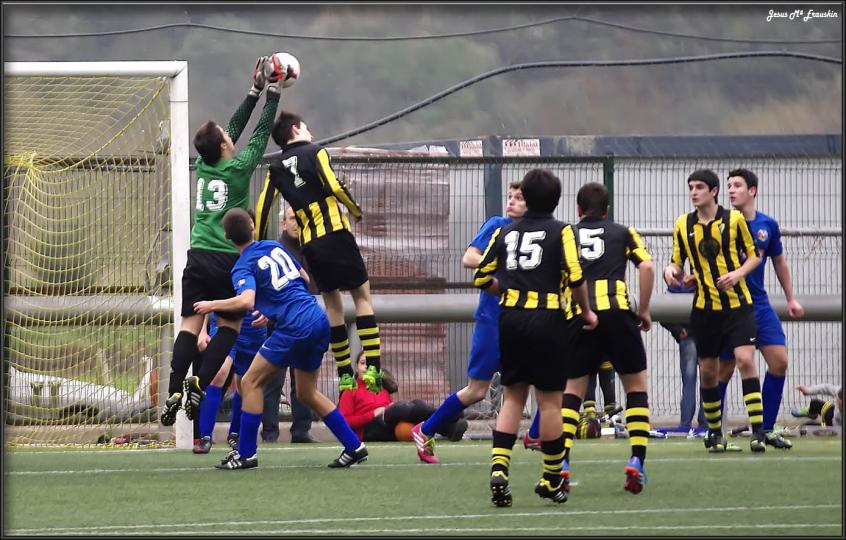 Para ganar en el futbol hace falta un solo requisito: Meter más goles que tu adversario. Así de simple y así de difícil en ocasiones. No importa lo que hagas para conseguirlo, no importa que juegues bien, que seas fuerte, que tengas el balón… Si no hay gol, no hay victoria. Y eso nos pasó, dimos la cara ante el líder, el Amaikak Bat. Le cogimos la medida e incluso le tuvimos entre las cuerdas en algunos momentos, pero nos falto el gol. Tantas ocasiones desperdiciadas, oportunidades claras desaprovechadas, nos falto eficacia. Íbamos a Deba con mucho respeto hacia el líder, un líder muy físico y fuerte. Comenzó el partido y no hubo que esperar mucho para que la emoción brotase sobre el campo, en el minuto 5 el Amaikak Bat nos metía su primer gol, 1-0. Lejos de hundirnos y pensar que nos podía caer un carro de goles, nuestros chavales se vinieron arriba y los siguientes diez minutos les acosamos constantemente. En el minuto 9 Axier tuvo el empate en la punta de su bota, pero el balón se encontró al portero rival. Fruto de ese empuje en el minuto 36 llega un penalti que tira Oskar y lo falla lanzándolo fuera. Yassin también dispuso de una oportunidad en un tiro raso cruzado que casi desborda al portero. Cada balón se disputaba como si fuese el ultimo, viniese por el suelo o por el aire allí había uno de los nuestros para luchar por él. No dejábamos jugar a nuestro rival a placer y el desgaste físico nos podía pasar factura. En el minuto 76 Yassin pone de puntillas a la afición en otra ocasión que la cantábamos como gol y seis minutos más tarde, en el 82, Oskar empalma de primeras un balón que a punto esta de pasar por encima del guardameta rival. Echados arriba, quemando todas las naves es cuando nos pillan en una contra, en el 91 y nos meten el segundo gol, 2-0. Aun así seguimos luchando, la rabia nos empujaba y un minuto más tarde, en el 92, Jon Rodríguez metía nuestro gol, 2-1. Todo parecía acabado, pero tuvimos el empate en el 93, un centro raso se pasea por la portería rival pasando a milímetros de la bota de Unai (Txiki) que aunque habiéndose tirado a por el balón no consigue llegar a tocarlo. Todavía se oían los ¡¡Uuuyyss!! en la grada cuando sonó el pitido final cerrando el 2-1 definitivo. Gran partido de los nuestros que pese a la derrota deben de estar orgullosos por el juego realizado ante el líder, derrochando ganas y entrega. El próximo partido en casa contra el Aloña Mendi. Si jugamos igual tendremos todas las papeletas para llevarnos el triunfo. Eso sí, tendremos que solucionar el tema de la eficacia.