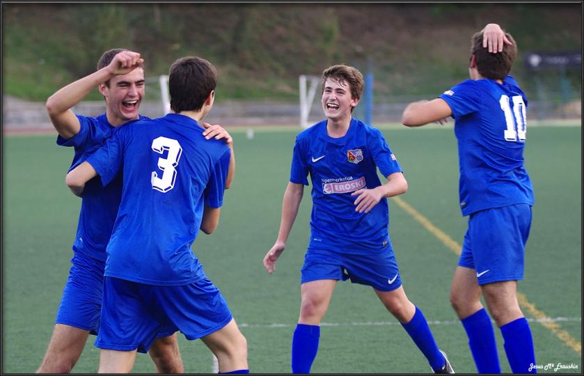 Hasta ahora había buen juego, pero no había gol. Pues si quieres taza… toma taza y media. Siete goles en un partido de “toma y daca”, en casa de un rival, el Urola, que siempre da guerra. Supimos jugar, estar organizados, tener paciencia, esperar nuestro momento alentados constantemente desde el banquillo… Y funciono, tanto que funciono. El Urola nos avisaba de su juego en el minuto siete con un balón al larguero y en el diez con su primer gol, 1-0. Movía el balón bien, pero nosotros manteníamos las posiciones y las líneas bien organizadas esperando el momento. En el minuto diecisiete, Aritz empataba el partido y comenzaban a verse las ansias que teníamos de llevarnos este partido. La primera parte fue un “ahora tu, ahora yo” hasta que a dos minutos del final, Unai Pérez “Txiki” marca y nos pone por delante en el marcador, 1-2. Fue comenzar la segunda parte y demostrar nuestras ansias. En una rápida jugada, en el minuto cuarenta y ocho, Madinabeitia conseguía el 1-3. Seis minutos más tarde Aritz estrellaba en el poste un balón. Acortaban distancias los rivales en el sesenta y tres, 2-3. Pero en el saque de un córner, Jon Rodríguez nos pone con el 2-4, era el minuto setenta y ocho. El Urola no se daba por vencido en ningún momento, de ahí el merito de los nuestros. Tan solo dos minutos más tarde conseguían el 3-4. A falta de tres minutos para el final, Raúl dispone de una ocasión que solo ante el portero le recorta, llega hasta la línea de fondo y sin ángulo golpeando con “rosca” casi consigue el quinto, si no hubiesen parado el balón en la misma línea de gol. Pitido final y muy buenas sensaciones. Mantengamos la alegría y el ánimo para el próximo partido contra el Burumendi en nuestro campo. A ver si por fin hacemos de nuestro feudo el campo de las victorias.