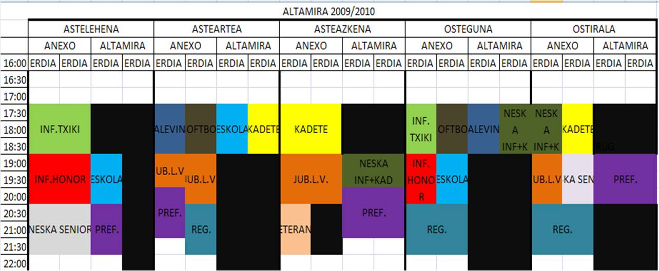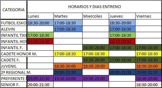 Estos son los horarios y campos que corresponden a cada equipo para entrenar, por favor respetar los horarios de inicio y de finalizacion de cada entrenamiento. Es la unica forma de funcionar en armonia. Gracias.